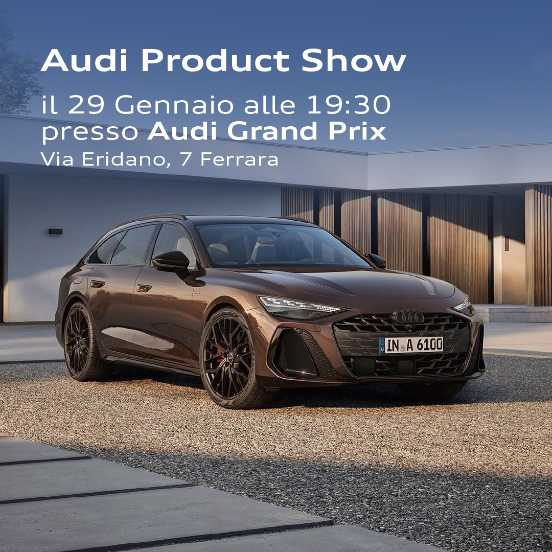 Preparati a vivere in prima persona l’innovazione Audi. Siamo lieti di invitarti all’evento Audi Product Show, che si terrà il prossimo 29 Gennaio 2026 dalle ore 19:30: un’occasione unica per toccare con mano l’eccellenza dei modelli più evoluti della gamma Audi, esplorando tecnologie, design e motorizzazioni all’avanguardia, in un contesto suggestivo. Vieni a scoprire da vicino ciò che rende unica ogni Audi.